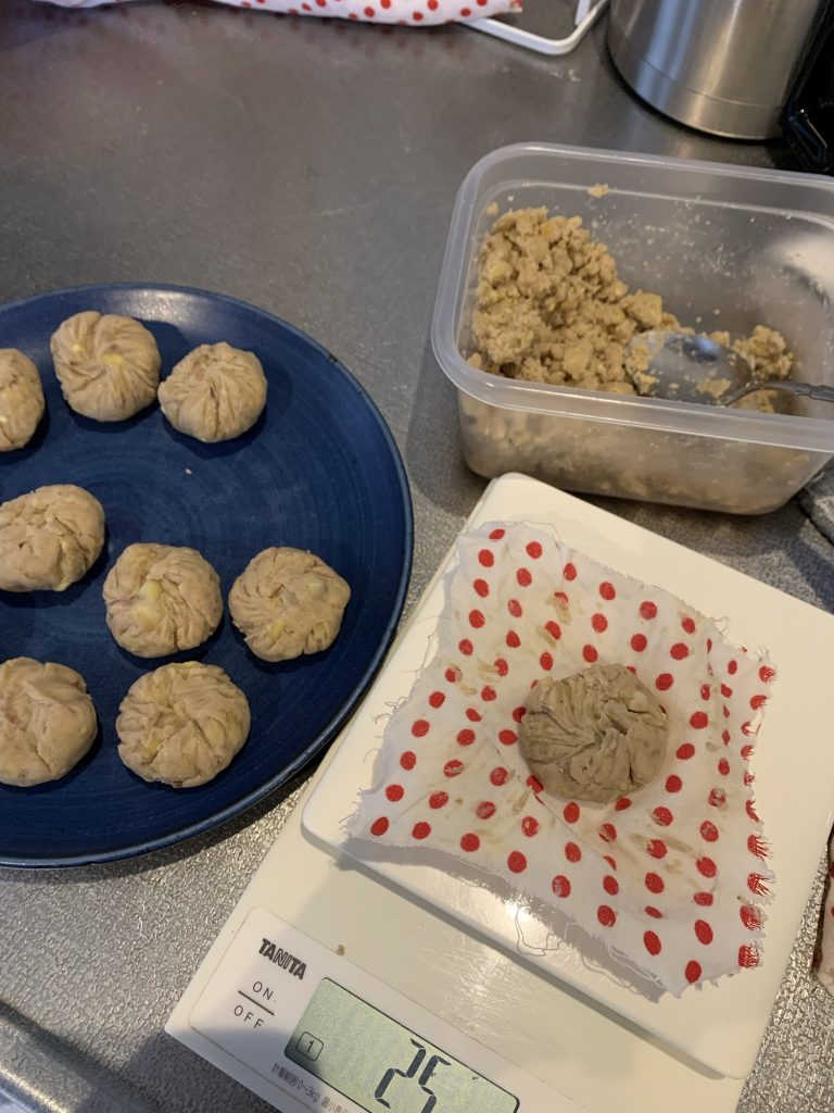 茹でて半分に切って中をスプーンでかき出し、すりこぎで潰して、お砂糖と塩少々、濡れぶきんでしぼって形を作る、栗のつぶつぶもちょっと残ってて 甘さ控えめで美味しくできました🌰